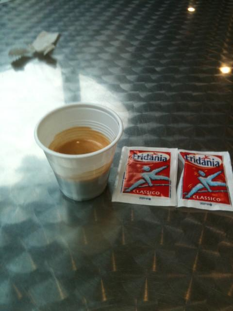 가이드가 가르쳐 준 대로 '무조건 빨리 계산하고 영수증을 제시해' 에스프레소를 받아왔다. 그리고 설탕을 타서 훌쩍 마신 뒤,찌꺼기로 입맛을 바꿔줬다.
